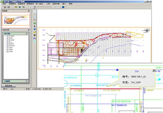 化工園總圖規(guī)劃系統將以原始圖紙資料為基礎做成的管廊、管線數據,以二維展現的方式加載到系統中,它不僅支持海量的矢量、影像和業(yè)務屬性等數據的加載和顯示
